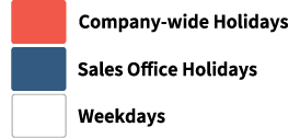 Our sales offices are open weekdays from 9:00 AM to 6:00 PM to process orders and respond to inquiries.