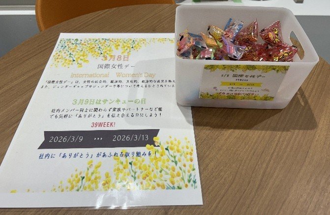 パンチ工業株式会社は、3月9日(月)から13日(金)までの1週間、【39(サンキュー)WEEK】と題した社内イベントを開催しています。本イベントは、3月8日(日)の国際女性デーと3月9日(月)のサンキューの日を掛け合わせた企画で、日頃の感謝や「ありがとう」を気軽に伝え合う1週間として実施しています。